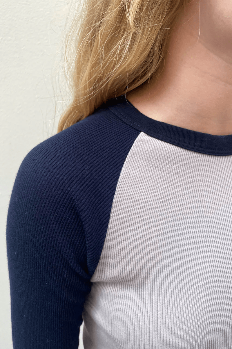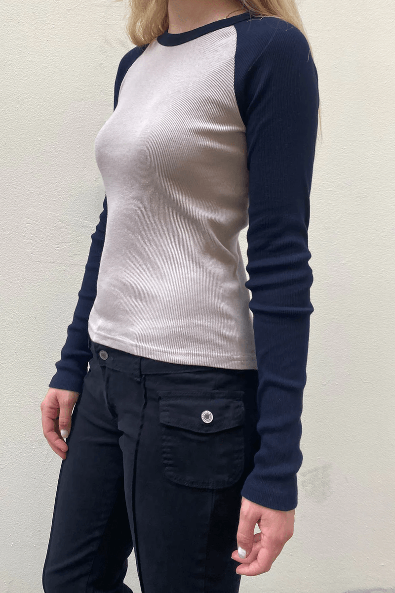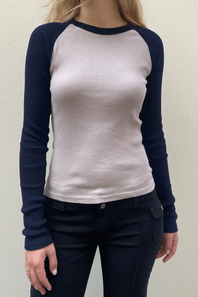povećajte Svoju Ležernu Garderobu S Elegantnim brandy Melville Bella Topom. Ovaj Zapanjujući Rebrasti Pamučni Baseball Top Ima Moderni Dizajn U Blokovima Boja Koji Savršeno Kombinira Taupe I Tamnoplavu, čineći Ga Neophodnim Za Svaku Modno Osviještenu Osobu.
