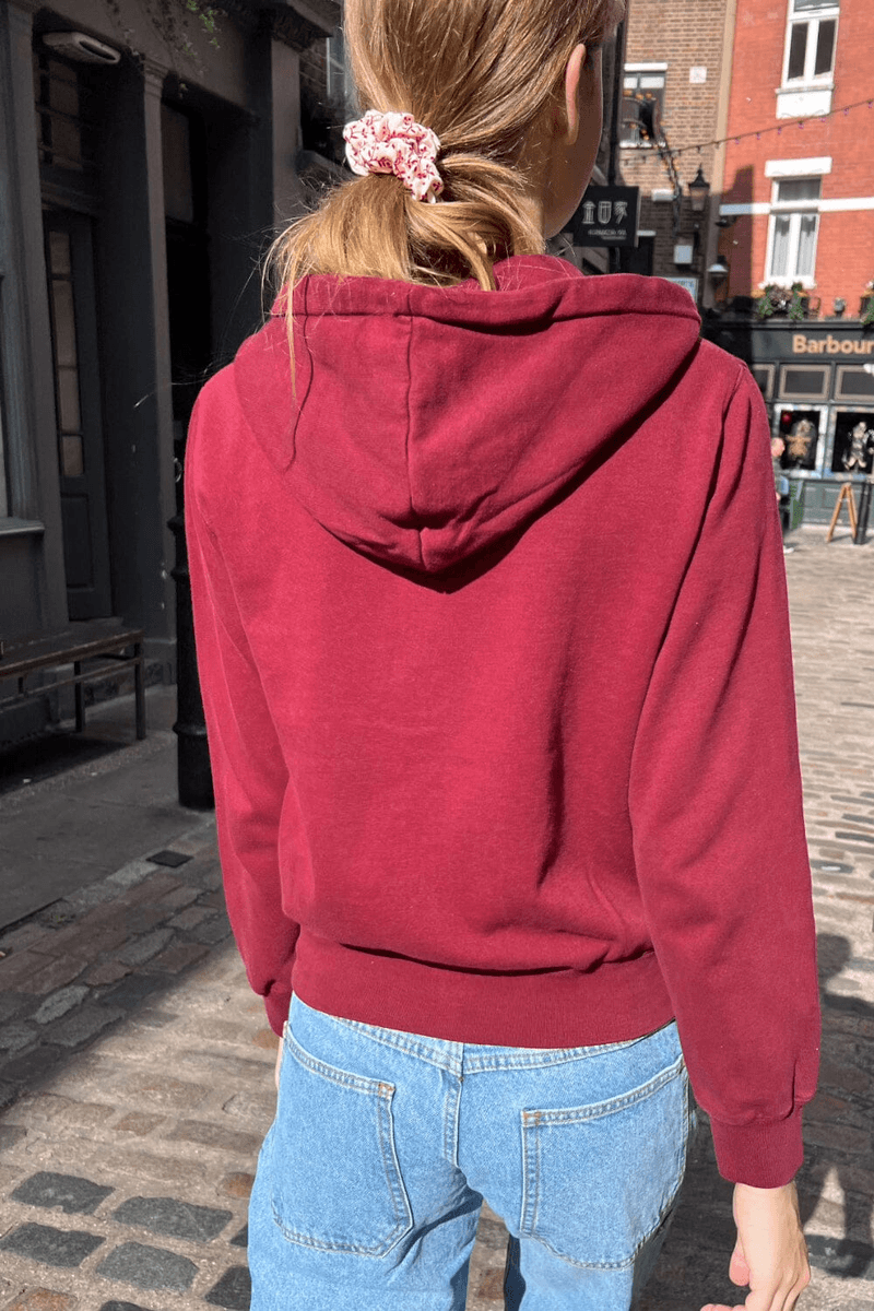 brandy Melville Christy Hoodie Burgundi Je Više Od Običnog Hoodie-a—to Je Modna Izjava. Njegova Bogata Burgundska Boja Dodaje Dašak Sofisticiranosti Svakoj Odjeći, čineći Ga Savršenim Za Slojevito Nošenje Ili Nošenje Samog. Kombinirajte Ga S Omiljenim Trapericama Ili Tajicama Za Trendi, A Opet Udoban Izgled Koji Je Savršen Za Svaku Priliku.