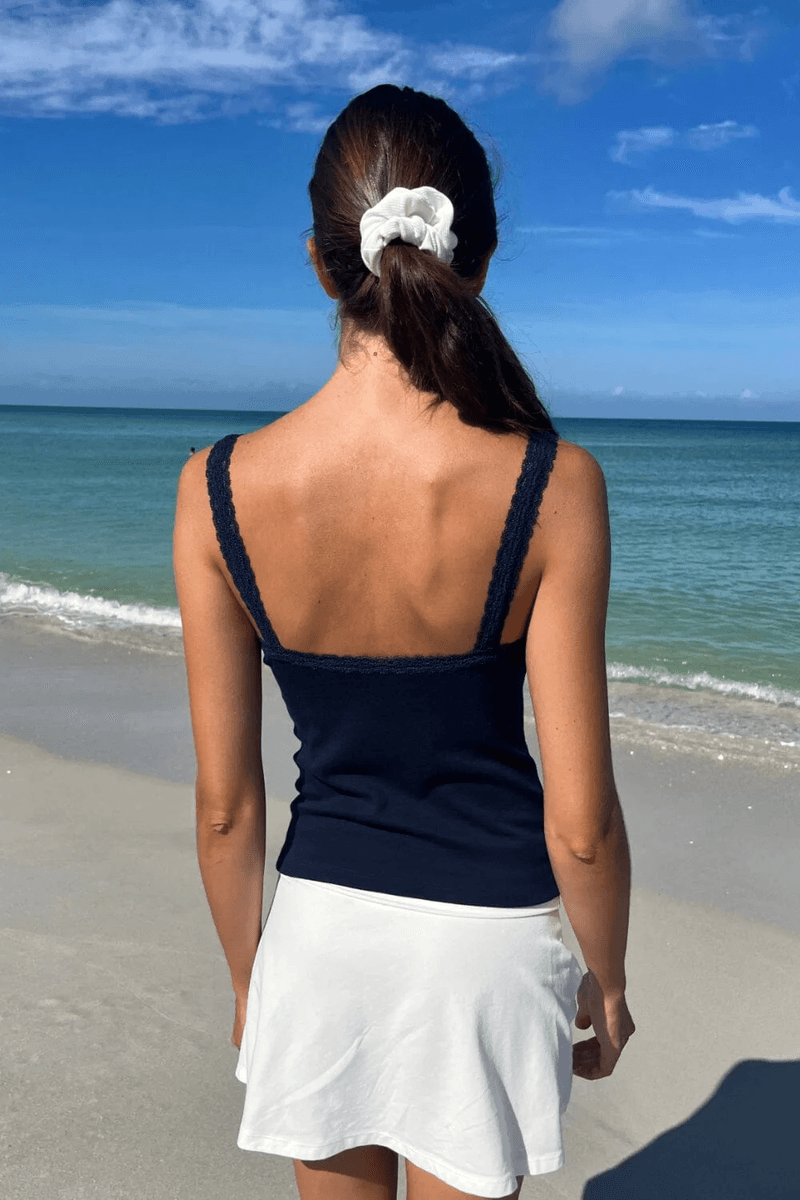 ovaj Top Je Bitan Dodatak Vašoj Kolekciji, Nudeći Bezvremensku Privlačnost I Beznaporanu Sofisticiranost. S Njegovom Zapanjujućom Mornarsko Plavom Nijansom I Elegantnim čipkastim Detaljima, Brandy Melville Honor Tank Sigurno će Postati Vaš Omiljeni Top Za Svaku Priliku.