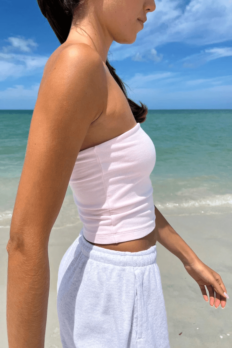 emeld A Ruhatáradat A Stílusos brandy Melville Amelia Crop Top Világos Rózsaszín Segítségével. Ez A Testhezálló, Rövid, Pánt Nélküli Top Tökéletes A Csinos és Trendi Megjelenés Megteremtéséhez. Kiváló Minőségű Anyagokból Készült, Amely Kényelmet és Stílust ötvöz Zökkenőmentesen.
