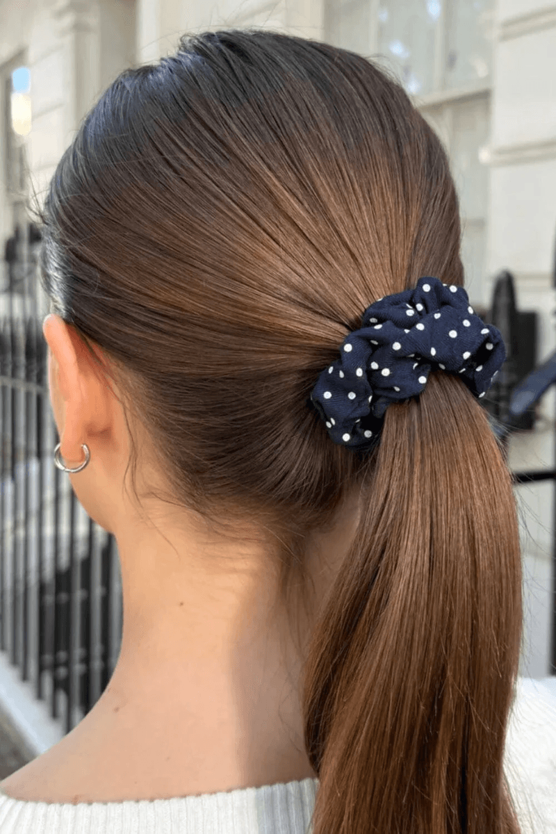 Brandy Melville Polka Dot Scrunchie in Navy with White Polka Dots