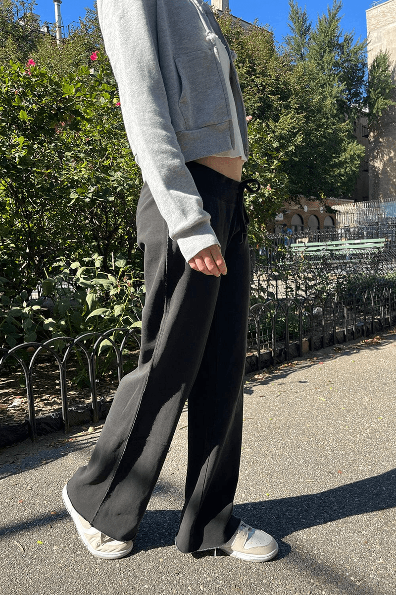 tingkatkan Praktik Yoga Dan Kegiatan Santai Anda Dengan celana Yoga Lembut Brandy Melville Hilary Berwarna Hitam. Celana Yang Stylish Dan Dilapisi Fleece Katun Lembut Ini Menawarkan Perpaduan Sempurna Antara Kenyamanan Dan Fungsionalitas, Menjadikannya Barang Yang Wajib Dimiliki Untuk Setiap Lemari Pakaian Aktif.