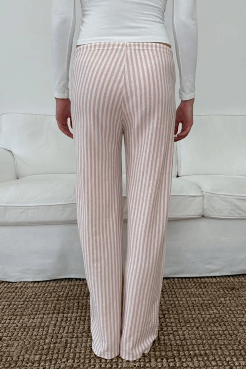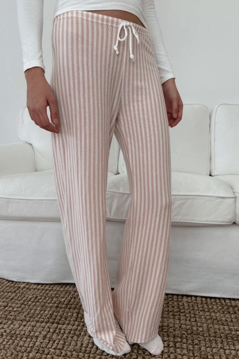 masuki Gaya Dan Kenyamanan Dengan celana Garis Anastasia Brandy Melville Dalam Garis-garis Merah Muda Dan Putih. Celana Piyama Lebar Yang Chic Ini Sempurna Untuk Bersantai Di Rumah Atau Membuat Pernyataan Saat Keluar Santai. Dengan Desainnya Yang Trendi, Anda Akan Menikmati Kenyamanan Dan Gaya.
