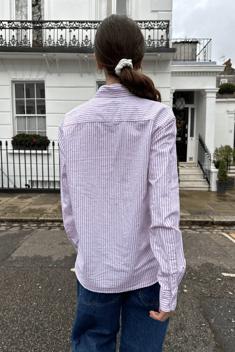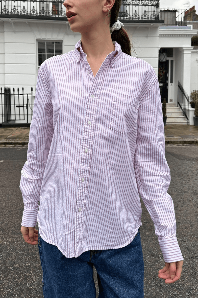 temukan Gaya Tanpa Usaha Dengan brandy Melville Stephanie Stripe Top Dalam Garis-garis Merah Muda Dan Putih Yang Indah. Blus Lengan Panjang Dengan Kancing Yang Chic Ini Sempurna Untuk Segala Kesempatan, Apakah Anda Akan Brunch Atau Hari Santai Di Kantor.