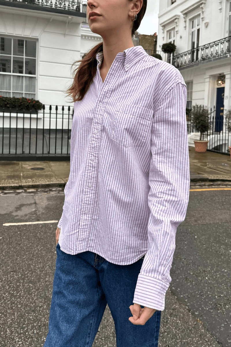 brandy Melville Stephanie Stripe Top Memiliki Kerah Klasik Dan Lengan Berkancing, Menawarkan Tampilan Yang Rapi Yang Dapat Dengan Mudah Beralih Dari Siang Ke Malam. Dengan Panjang 28" (71 Cm) Dan Ukuran Bust 16" (41 Cm), Blus Ini Memberikan Siluet Yang Menyanjung Untuk Semua Tipe Tubuh.
