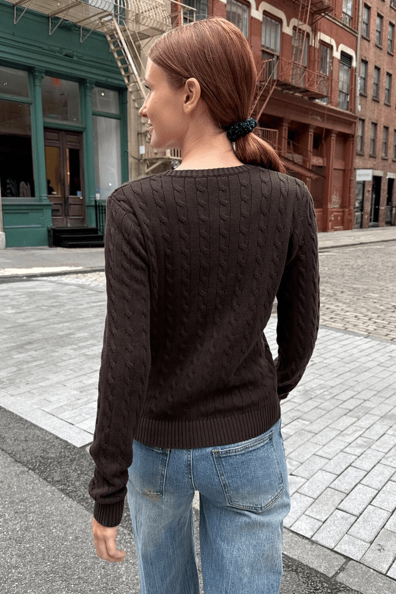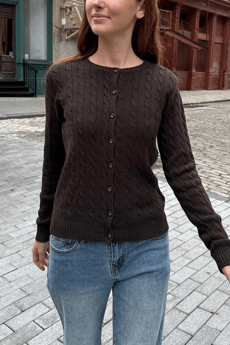 brandy Melville Amalie Cable Knit Cardigan Dalam Mocha