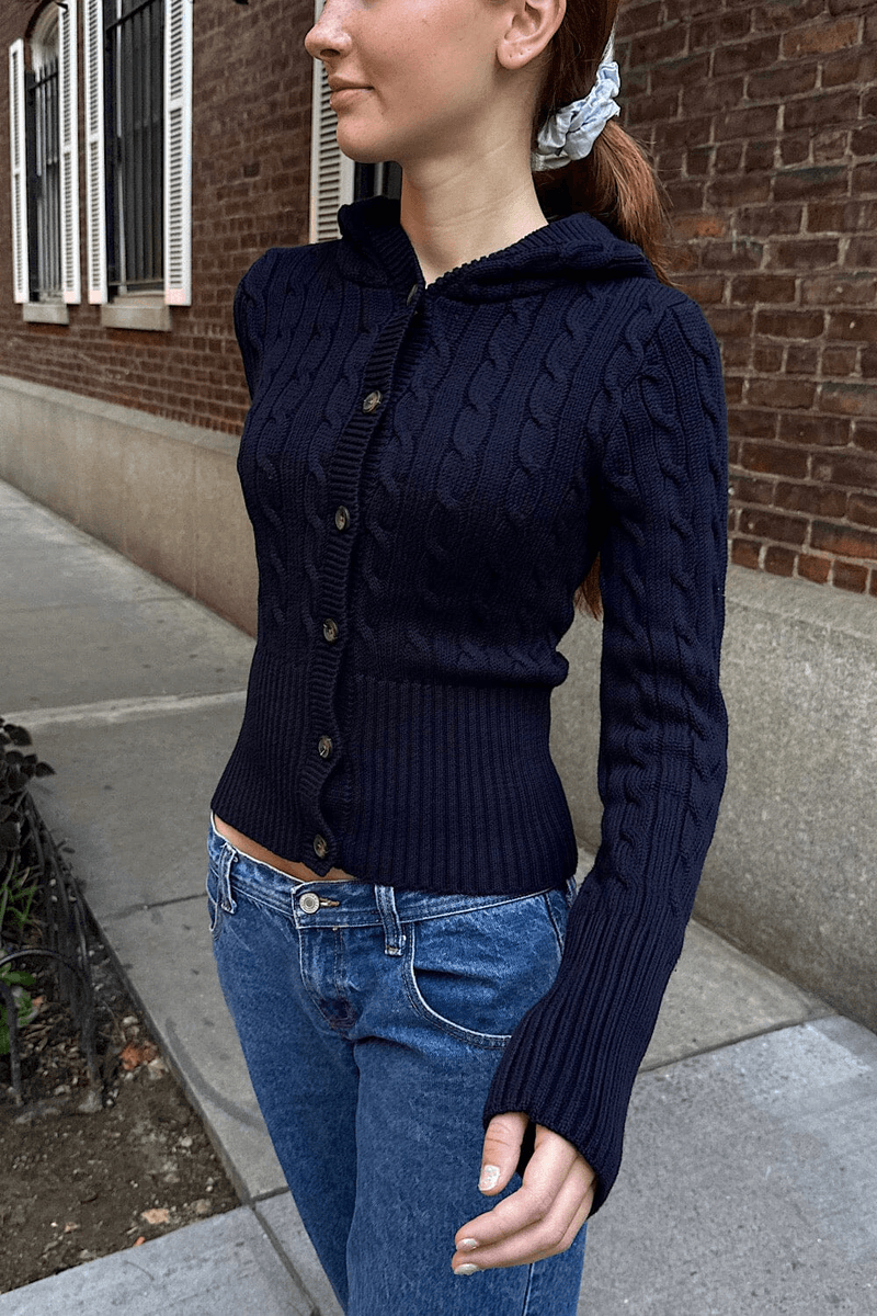 memperkenalkan Cardigan Rajut Kabel Aura Brandy Melville Dalam Warna Biru Navy