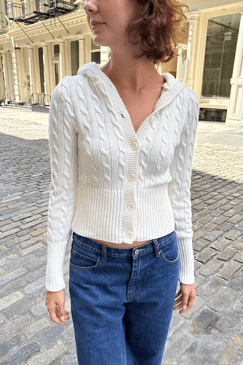 jangan Lewatkan Kesempatan Untuk Memiliki cardigan Rajut Kabel Aura Brandy Melville Putih. Tambahkan Ke Keranjang Anda Hari Ini Dan Tampil Dengan Gaya!