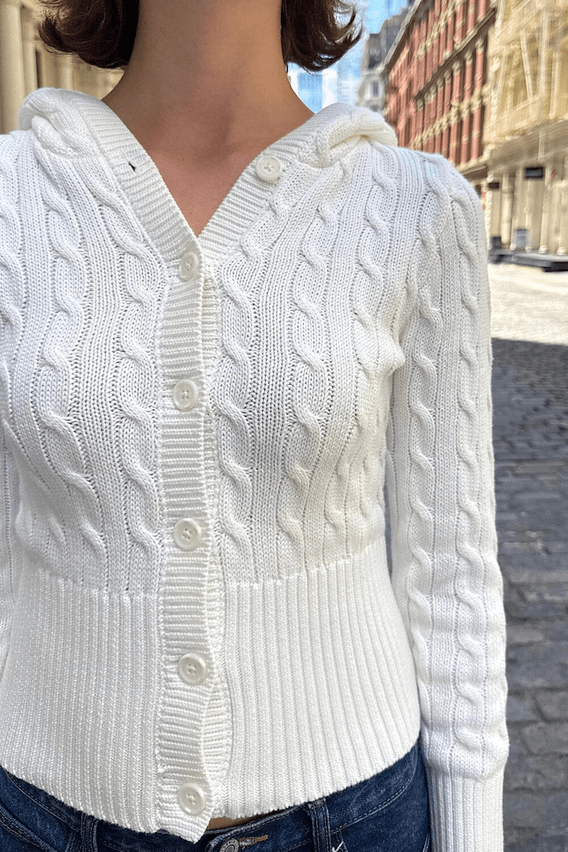 tingkatkan Lemari Pakaian Anda Dengan Cardigan Rajut Kabel Aura Brandy Melville Putih