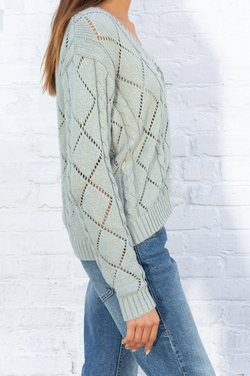 temukan Sweater Rajut Brandy Melville Louise Dalam Warna Sage Green