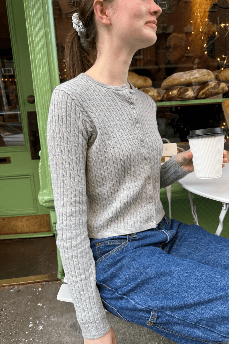 brandy Melville Zoe Cable Knit Cardigan Dalam Heather Grey