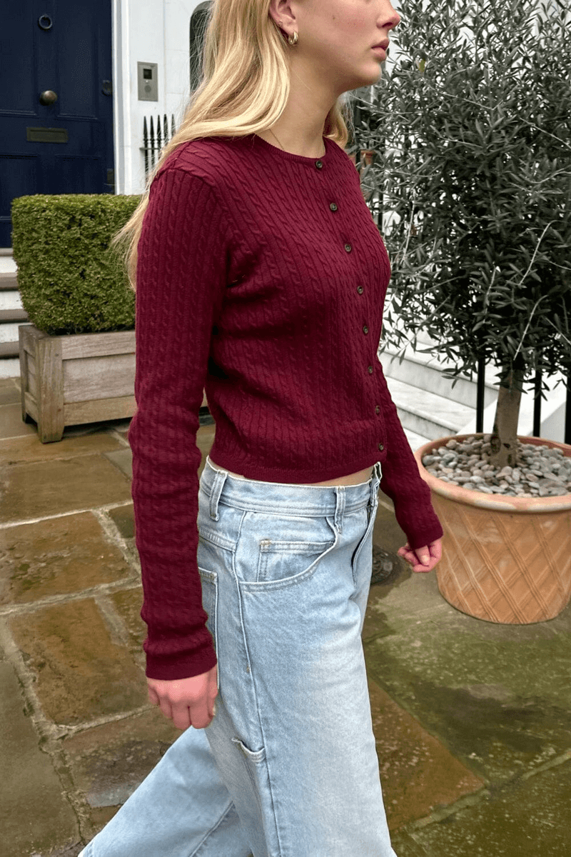 tingkatkan Lemari Pakaian Anda Dengan Cardigan Rajut Kabel Brandy Melville Zoe Dalam Warna Burgundy