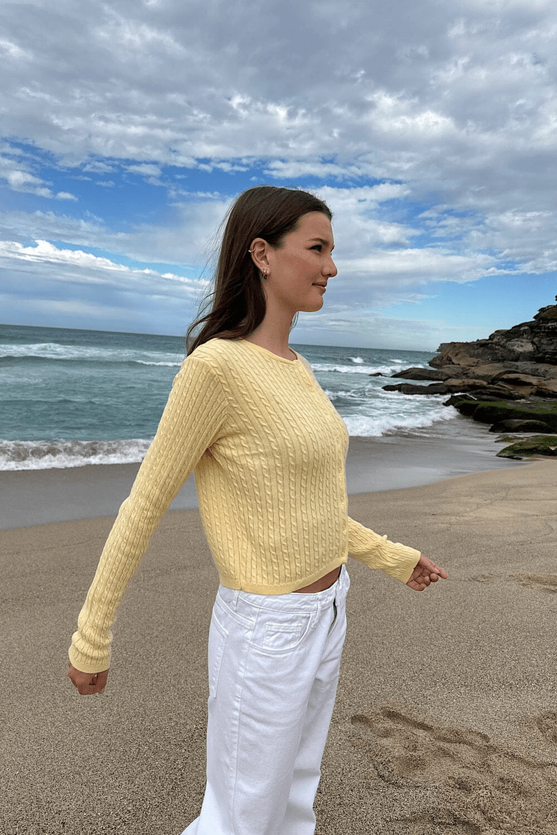 brandy Melville Zoe Cable Knit Cardigan Dalam Pastel Kuning