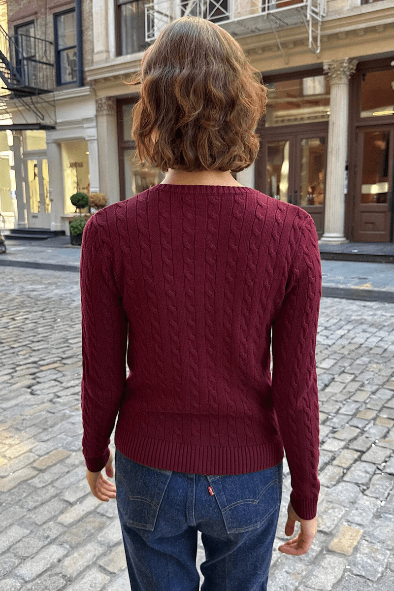 brandy Melville Amalie Cable Knit Cardigan Burgundy