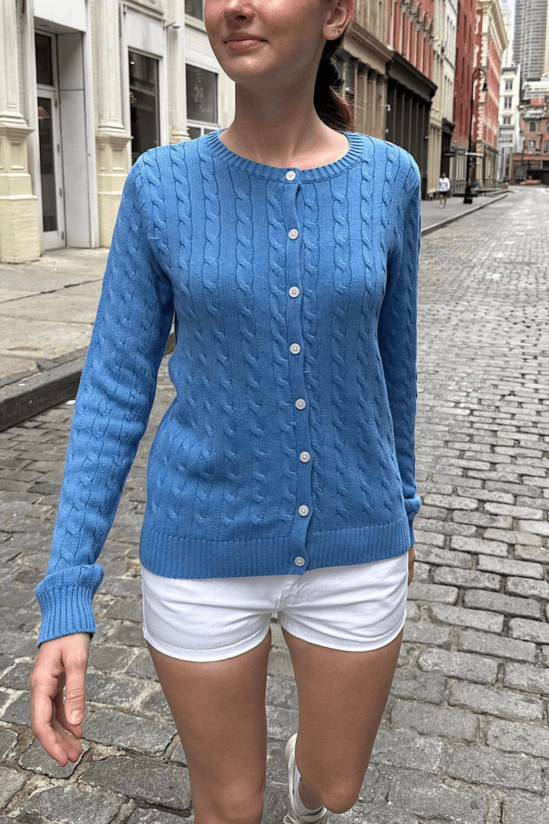 brandy Melville Amalie Cable Knit Cardigan Memiliki Komposisi Kain Yang Nyaman Dan Bernapas Dari 100% Katun, Memastikan Anda Tetap Hangat Tanpa Mengorbankan Kenyamanan. Dengan Panjang 30" (76cm) Dan Ukuran Bust 25" (63cm), Ini Menawarkan Fit Yang Menyanjung Yang Berpadu Indah Dengan Pakaian Kasual Maupun Formal.