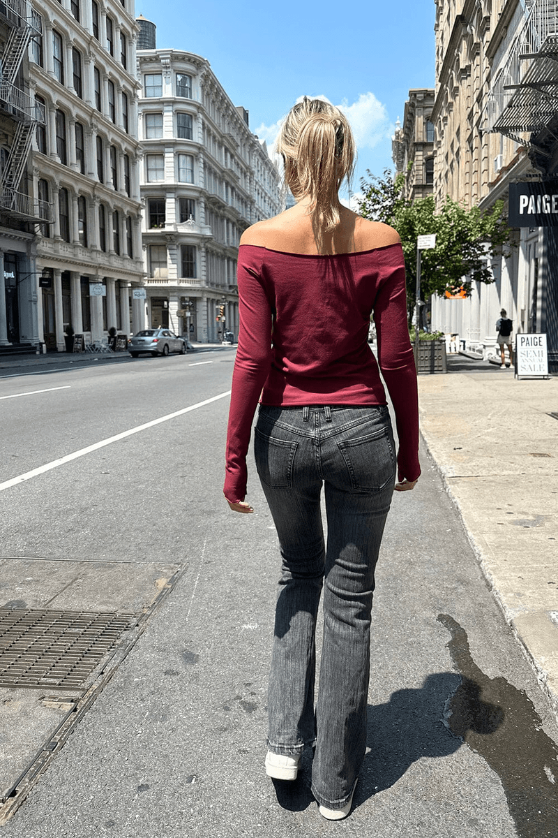tingkatkan Lemari Pakaian Anda Dengan brandy Melville Bonnie Top Burgundy Yang Menakjubkan. Atasan Off-the-shoulder Dengan Lengan Panjang Ini Menggabungkan Kenyamanan Dan Gaya Dengan Sempurna, Menjadikannya Barang Yang Wajib Dimiliki Bagi Setiap Individu Yang Mengikuti Tren Mode.
