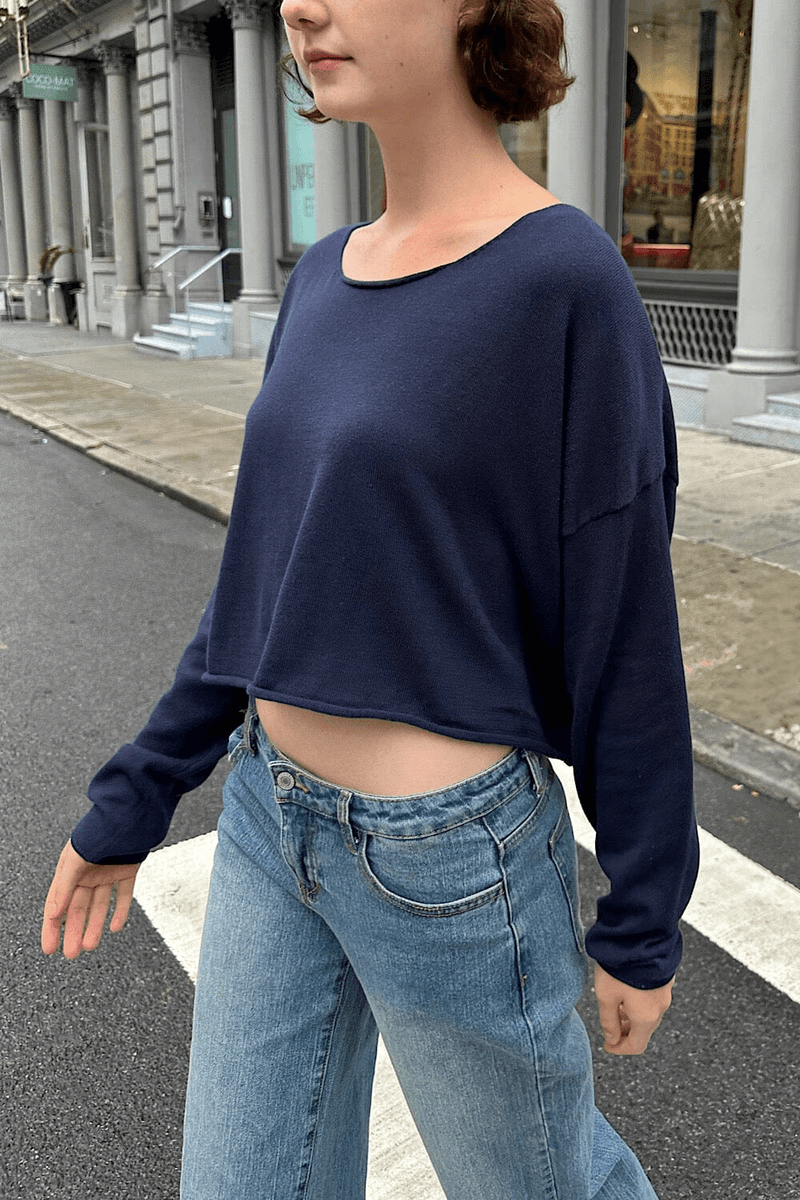 sweater Cropped Brandy Melville Cameron Dalam Navy Klasik Bukan Hanya Sweater Biasa; Ini Adalah Tambahan Serbaguna Untuk Lemari Pakaian Sehari-hari Anda. Kain Ringan Memastikan Sirkulasi Udara Sambil Menjaga Anda Tetap Nyaman. Apakah Anda Akan Brunch Atau Bersantai Di Rumah, Sweater Ini Cocok Untuk Setiap Kesempatan.