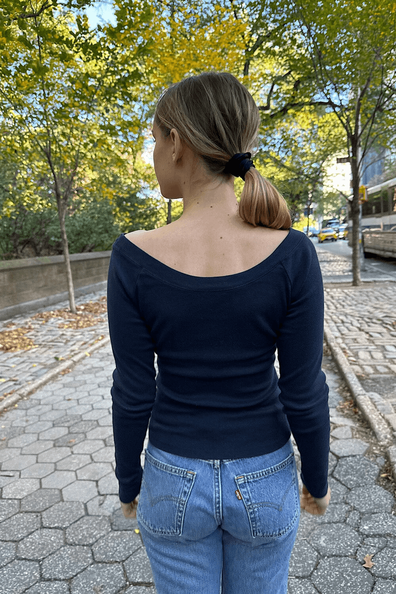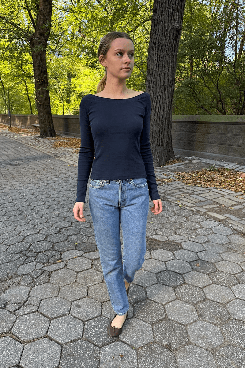 tingkatkan Lemari Pakaian Anda Dengan brandy Melville Camila Top Biru Navy Yang Menakjubkan. Atasan Lengan Panjang Off-the-shoulder Yang Chic Ini Adalah Perpaduan Sempurna Antara Kenyamanan Dan Gaya, Menjadikannya Barang Penting Bagi Siapa Saja Yang Mengikuti Tren Mode.