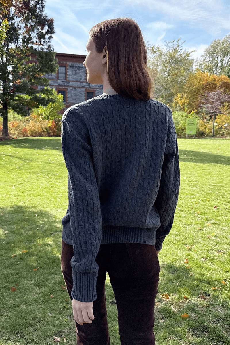 - desain Stylish: Tekstur Rajutan Kabel Dan Trim Bergaris Menambahkan Sentuhan Sofistikasi.