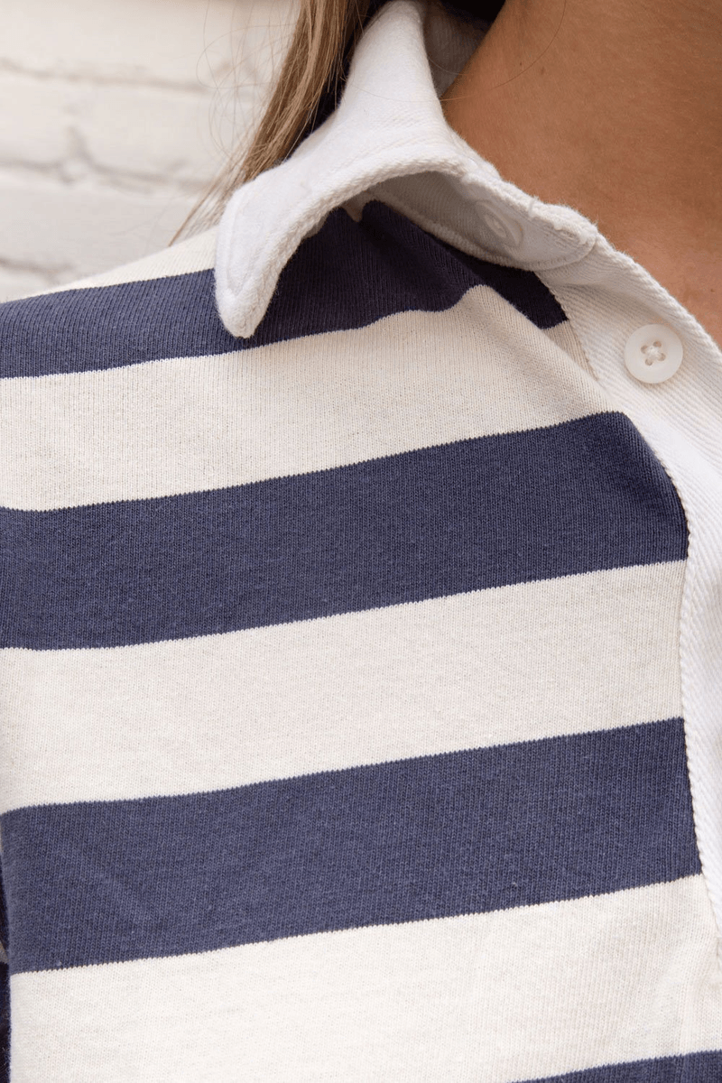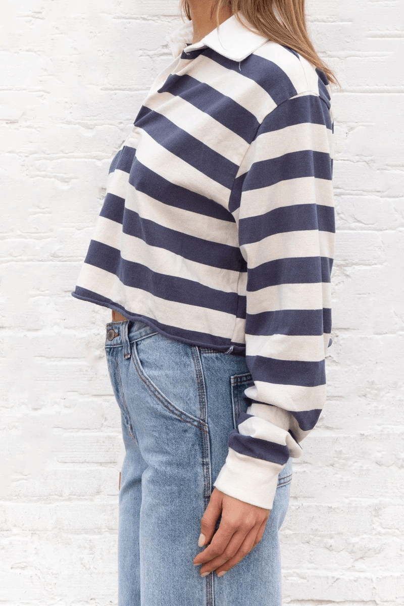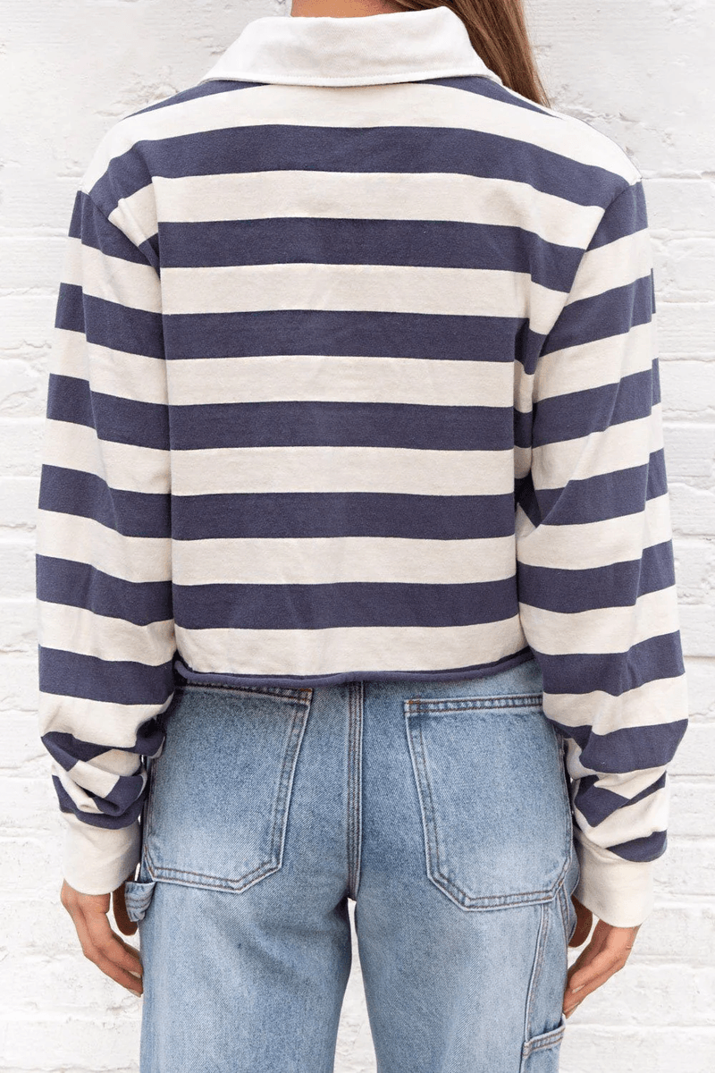 Discover the Brandy Melville Evelyn Top in Ivory with Blue Stripes