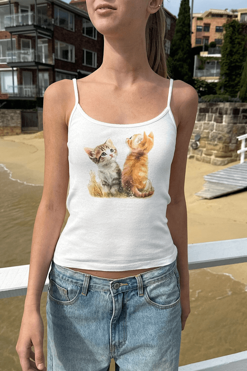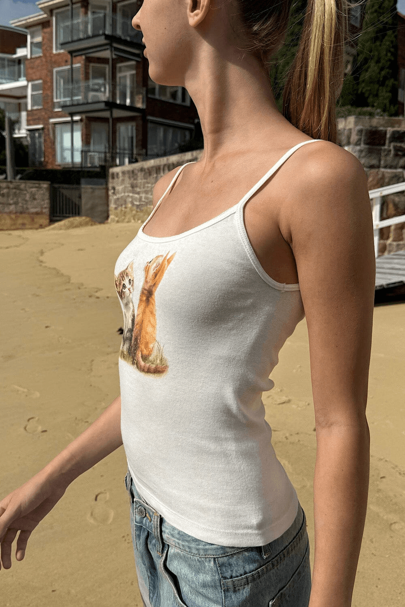 Discover the Brandy Melville Skylar Kittens Scalloped Tank in White