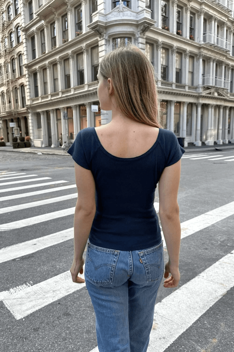 pakelkite Savo Garderobą Su Stilingu brandy Melville Zelly Top Tamsiai Mėlynos Spalvos. šis Prigludęs Trumpomis Rankovėmis Viršus Sujungia Komfortą Ir šiuolaikišką Dizainą, Todėl Jis Yra Puikus Papildymas Bet Kokiam įvaizdžiui. Nesvarbu, Ar Rengiatės Vakarui, Ar Laikotės Atsitiktinio Stiliaus, šis Universali Dalis Yra Būtina.
