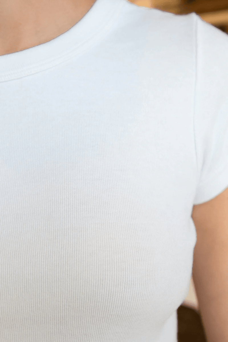 verhoog Je Garderobe Met De Stijlvolle brandy Melville Hailie Top Wit. Dit Aansluitende, Cropped T-shirt Met Korte Mouwen Is De Perfecte Mix Van Comfort En Chic, Waardoor Het Een Must-have Is Voor Elke Mode-enthousiasteling.