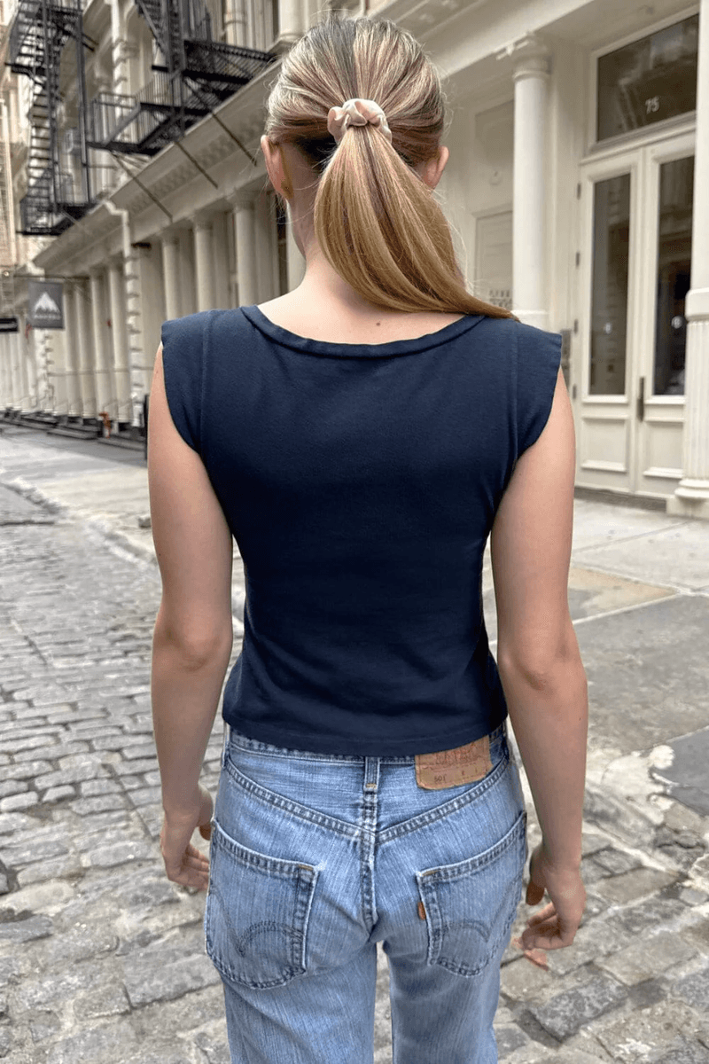 mis De Kans Niet Om Deze Prachtige brandy Melville Amara Tank Marineblauw Te Bezitten. Voeg Het Vandaag Nog Toe Aan Je Winkelwagentje En Ervaar De Perfecte Mix Van Stijl En Comfort!