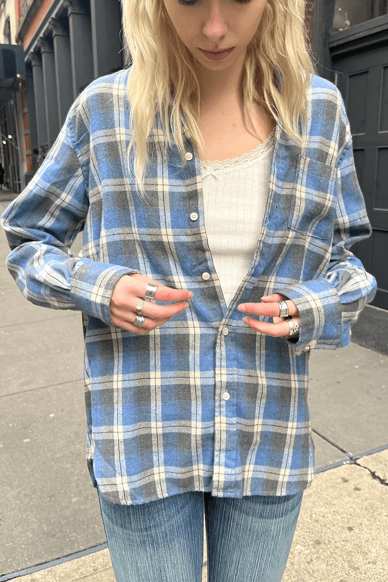 mis De Kans Niet Om De Brandy Melville Hazel Flannel Top In Blauwgrijs Geruit Aan Je Collectie Toe Te Voegen. Shop Nu En Ervaar De Perfecte Mix Van Stijl En Comfort!