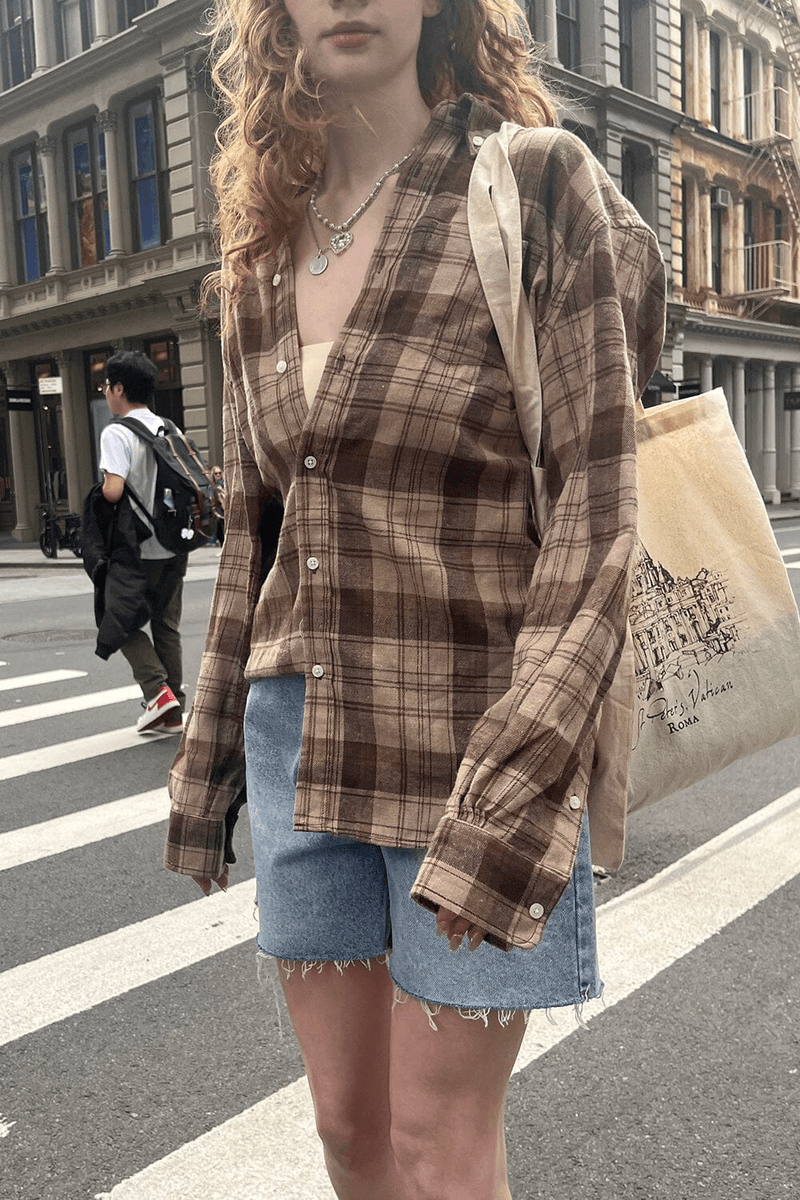 mis Deze Essentiële Toevoeging Aan Je Collectie Niet. shop De Brandy Melville Hazel Flannel Top Grote Bruine Ruit Vandaag Nog En Ervaar De Perfecte Mix Van Mode En Comfort!