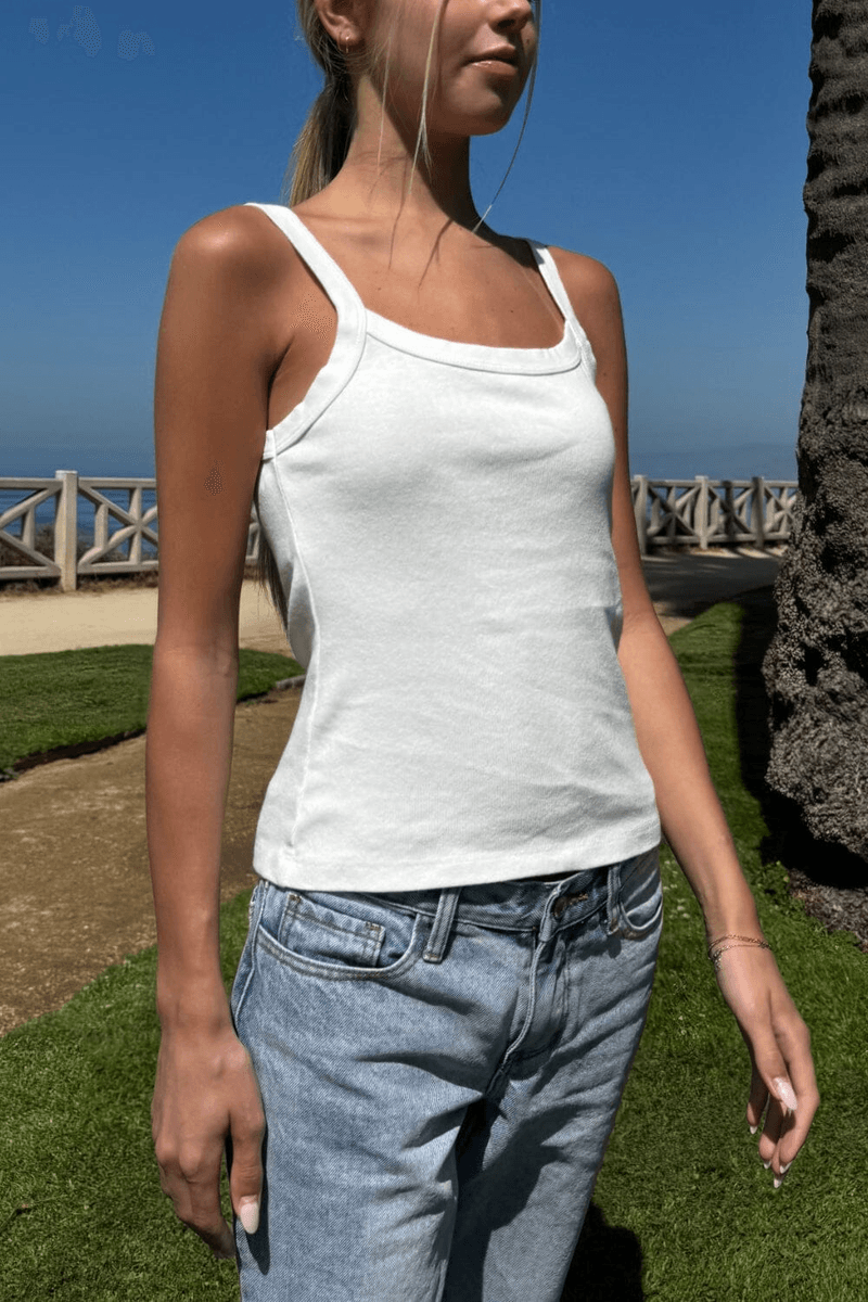 heve Din Hverdagsgarderobe Med brandy Melville Belle Tank Hvit. Denne Stilige, Tettsittende Tanktoppen Kombinerer Stil Og Komfort, Noe Som Gjør Den Til Et Must-have For Enhver Motebevisst Person.