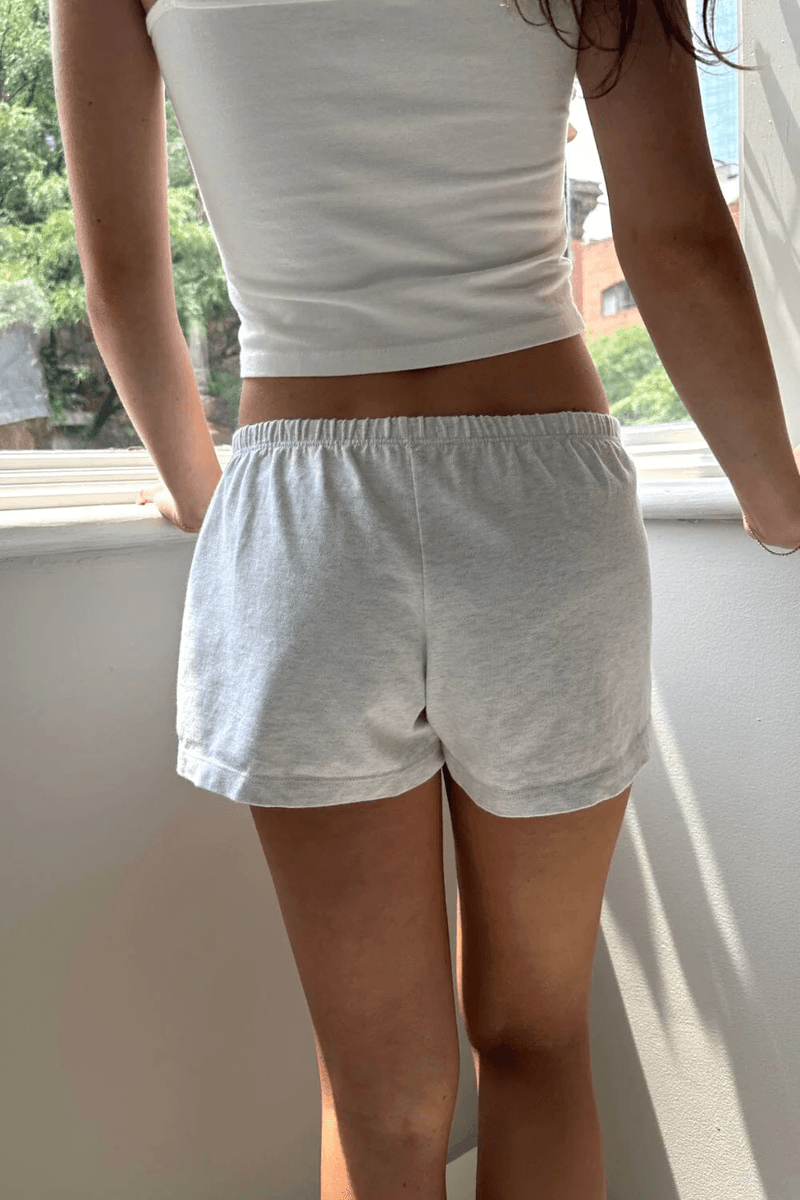 løft Loungewear-kolleksjonen Din Med brandy Melville Emery Bomullssweatshorts Lys Sølvgrå. Disse Ultra-myke Sweatshortsene Er Designet For Komfort Og Stil, Noe Som Gjør Dem Til Det Perfekte Valget For Uformelle Utflukter Eller Koselige Dager Hjemme.