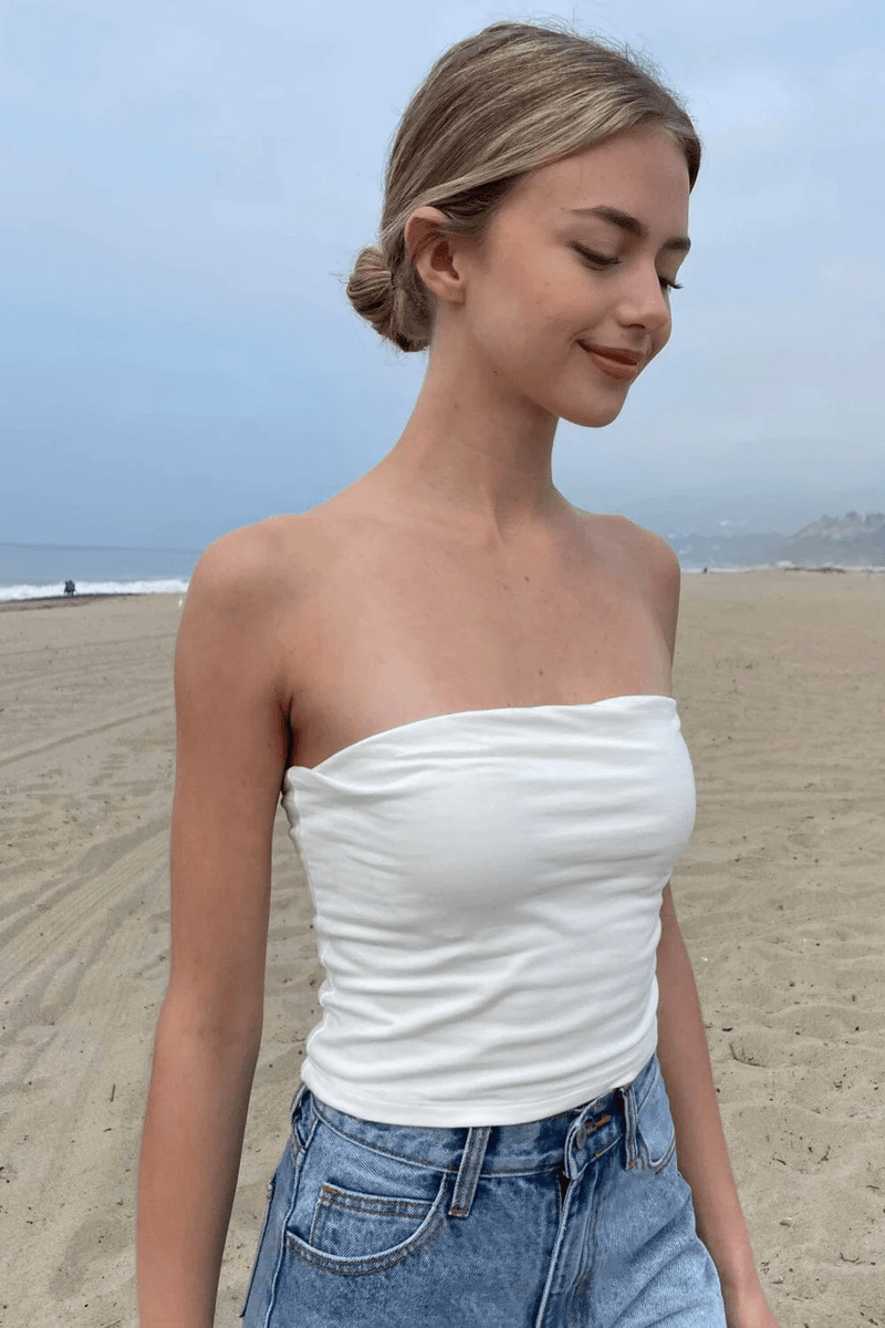 dzięki Bezramiączkowemu Fasonowi, Ten Crop Top Jest Idealny Na Słoneczne Dni I Wieczorne Wyjścia. Lekki Materiał Zapewnia Komfort Przez Cały Dzień, A Klasyczny Biały Kolor Dodaje Wszechstronności Twojej Garderobie. Przyjmij Stylowy I Pewny Siebie Wygląd Z łatwością!