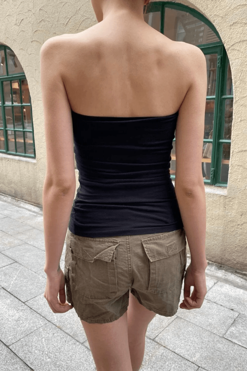 eleve Seu Estilo Com O top Amelia Da Brandy Melville Preto, Uma Peça Deslumbrante, Ajustada E Cropped, Projetada Para Chamar A Atenção. Este Top Chique Apresenta Um Requintado Detalhe Franzido No Centro Do Busto, Complementado Por Um Delicado Laço Que Adiciona Um Toque De Feminilidade. Perfeito Para Qualquer Ocasião, Este Top Versátil é Um Item Indispensável No Seu Guarda-roupa.