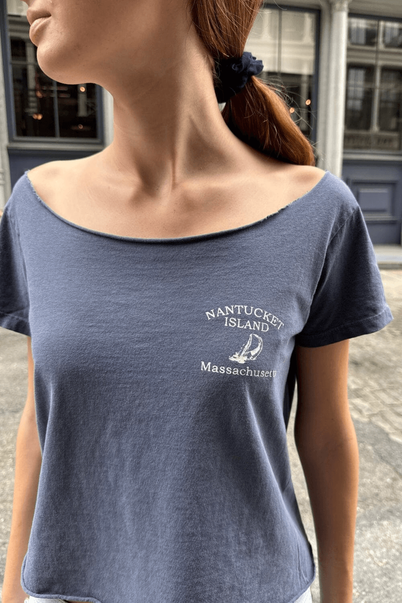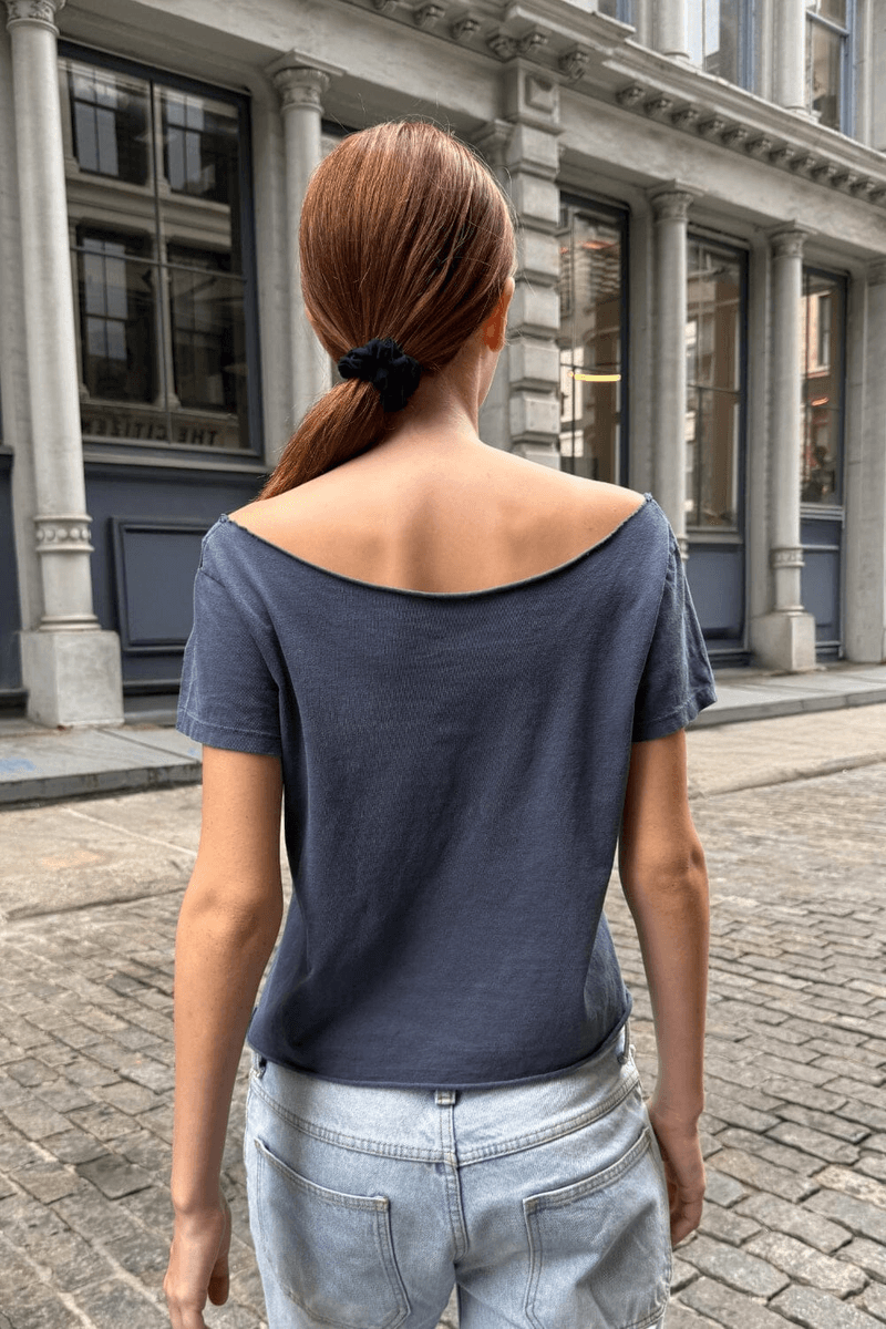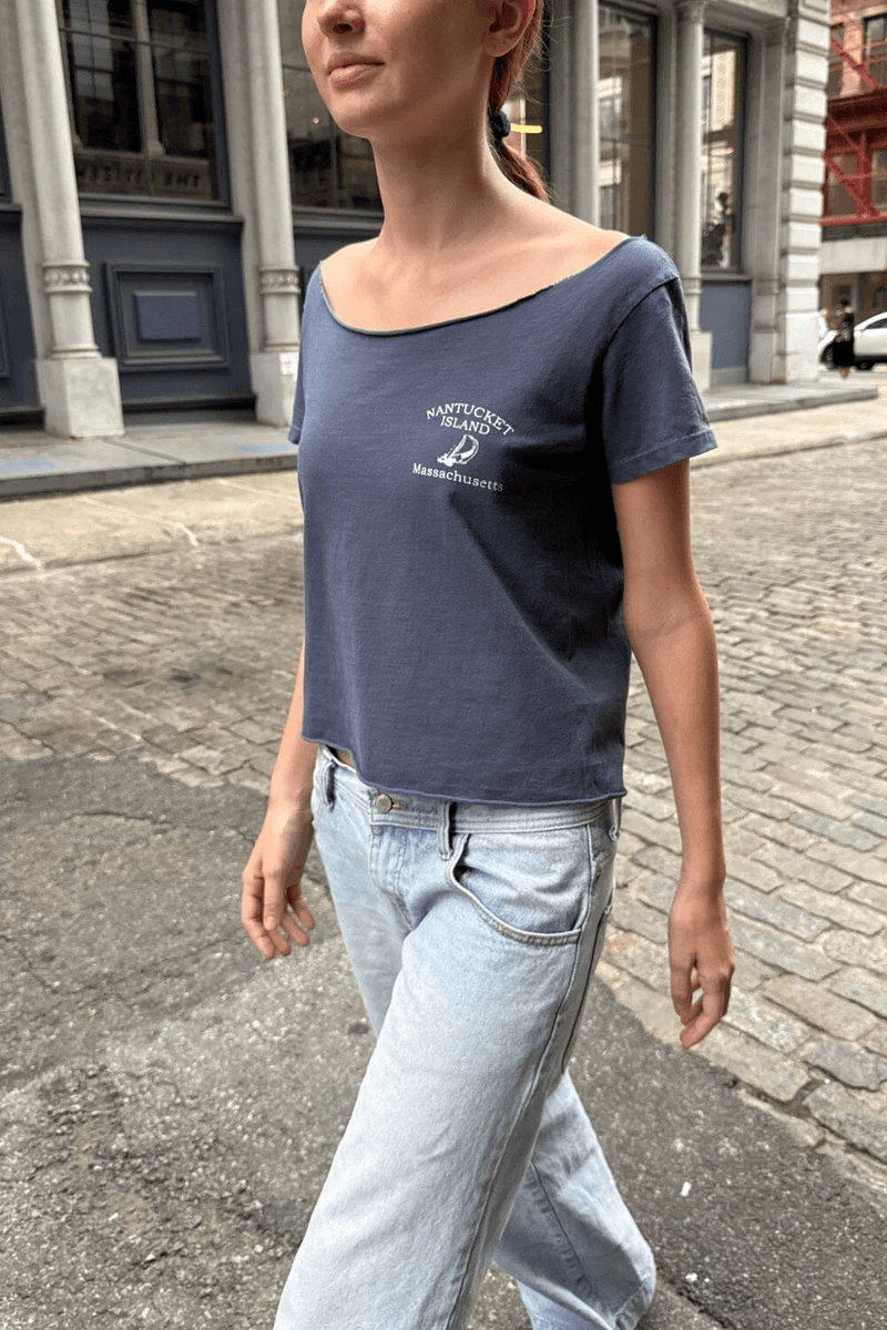 elevă-ți Garderoba Casual Cu brandy Melville Robyn Nantucker Island Top într-o Nuanță Frumoasă De Albastru Estompat. Acest Top Ușor, Cu Umerii Descoperiți, Este Perfect Pentru Zilele însorite și Serile Relaxate.