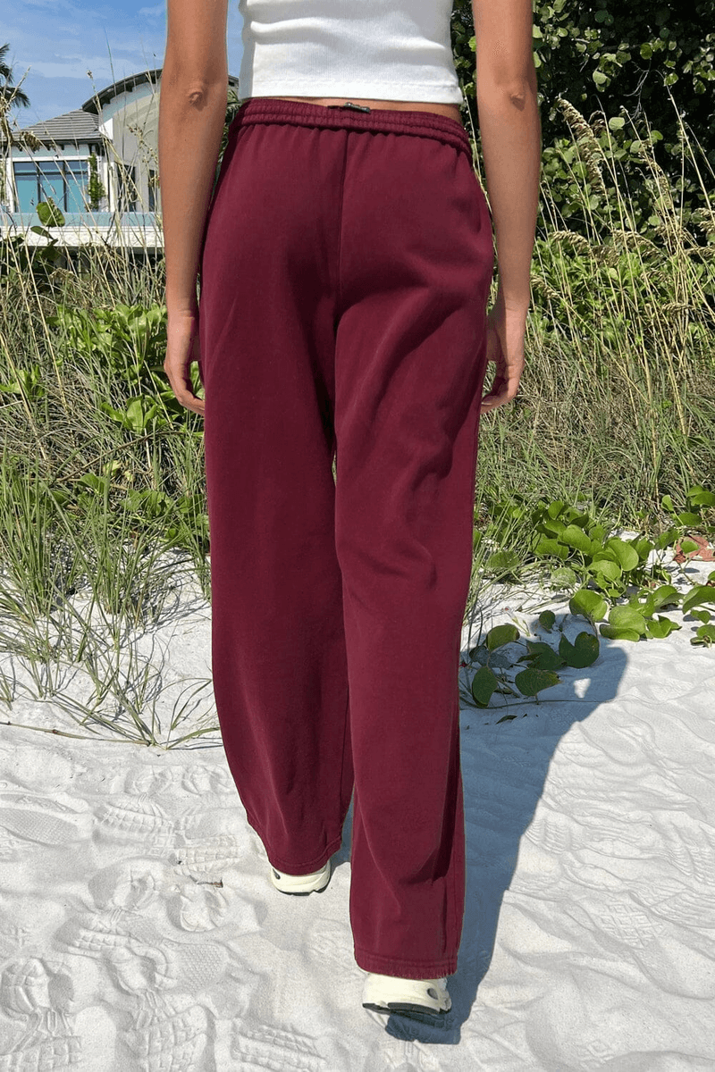 îmbunătățește-ți Colecția De îmbrăcăminte De Interior Cu Pantalonii De Trening Brandy Melville Anastasia Tie într-o Nuanță Burgundy Uimitoare. Acești Pantaloni De Trening Sunt Concepuți Pentru Cei Care Apreciază Atât Stilul, Cât și Confortul, Făcându-i Alegerea Perfectă Pentru Zilele Confortabile Acasă Sau Ieșirile Casual.