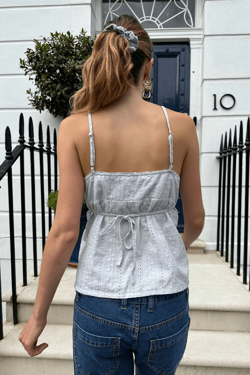 brandy Melville Edith Pointelle Tank Svetlomodrá Je Vyrobený Z Mäkkej Zmesi 80% Polyesteru A 20% Bavlny, Ktorá Ponúka Priedušnosť A Pohodlie. S Dĺžkou 16 Palcov (40 Cm) A Obvodom Hrudníka 13 Palcov (33 Cm) Je Tento Top Navrhnutý Tak, Aby Sa Nosil Bez Námahy. či Už Ho Skombinujete S Obľúbenými šortkami Alebo Ho Nosíte Pod ľahkým Kardigánom, Je To Univerzálny Kúsok Pre Každé Ročné Obdobie.