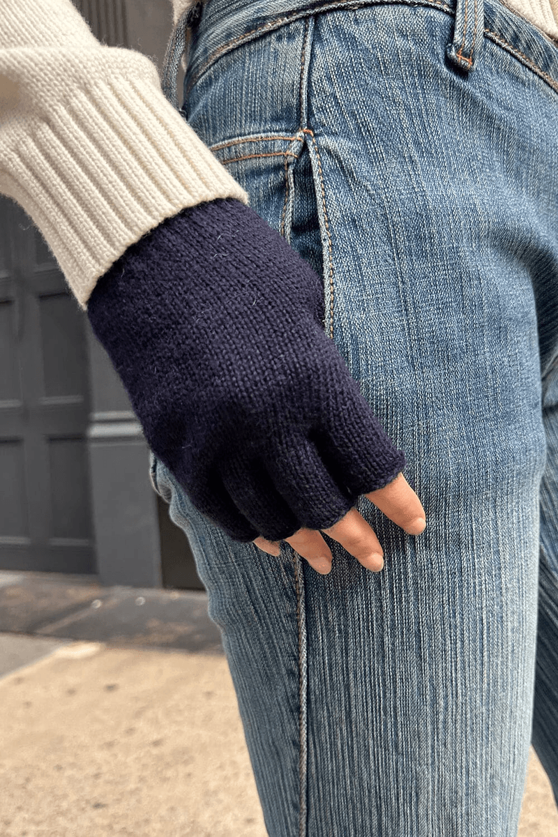 Stay Warm and Stylish with Brandy Melville Fingerless Wool Gloves in Navy Blue