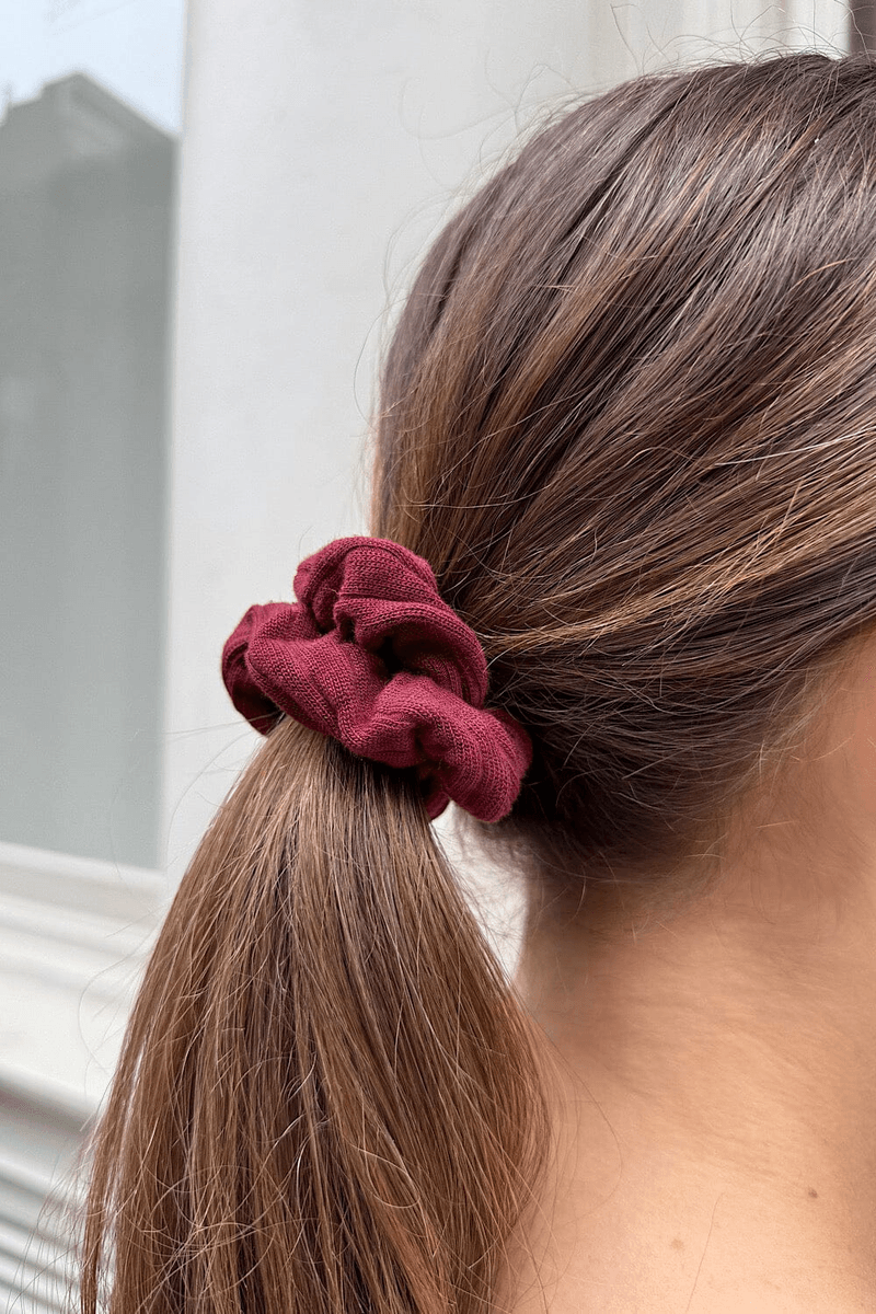 Whether you're at the gym, in the office, or out with friends, this scrunchie offers both practicality and style. Its timeless design makes it a versatile choice for any occasion, while the beautiful burgundy color complements a wide range of outfits.
