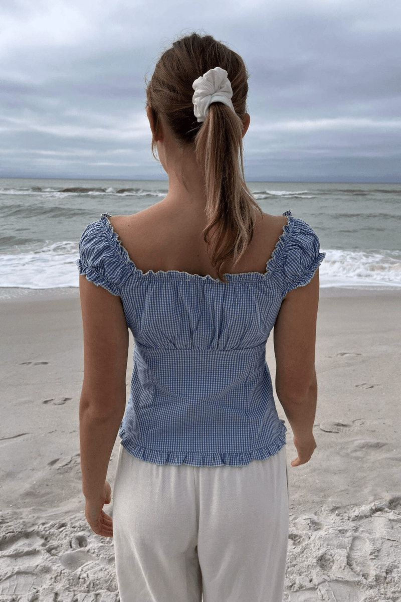 brandy Melville Elena Kockovaný Top - Modro-biely Kockovaný štýl