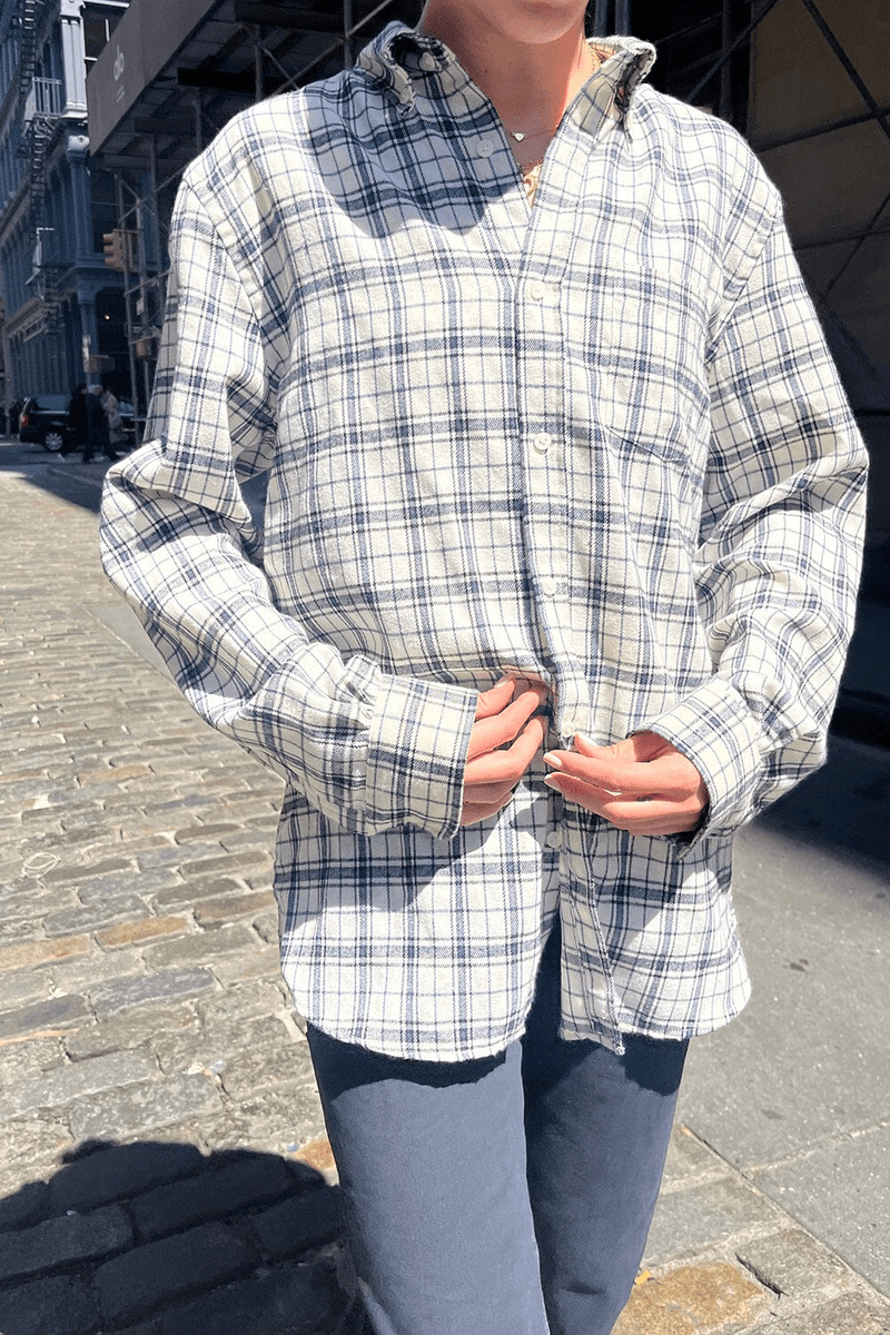 Brandy Melville Hazel Flanel Košulja Slonovače Sa Mornarskim Kariranim Uzorkom (ne Omogućavaj) U Redu