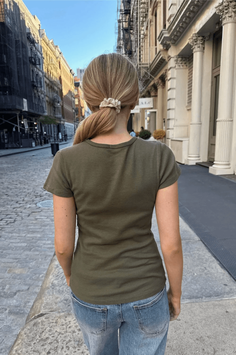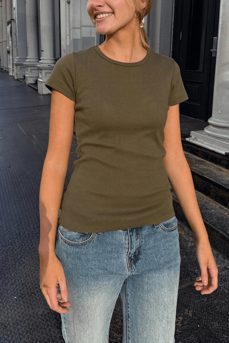 höj Din Avslappnade Garderob Med brandy Melville Hailie Top Deep Forest. Denna Mjuka, Figurnära T-shirt är Perfekt För Lager-på-lager Eller Att Bära Ensam, Vilket Gör Den Till Ett Mångsidigt Tillskott Till Varje Outfit.