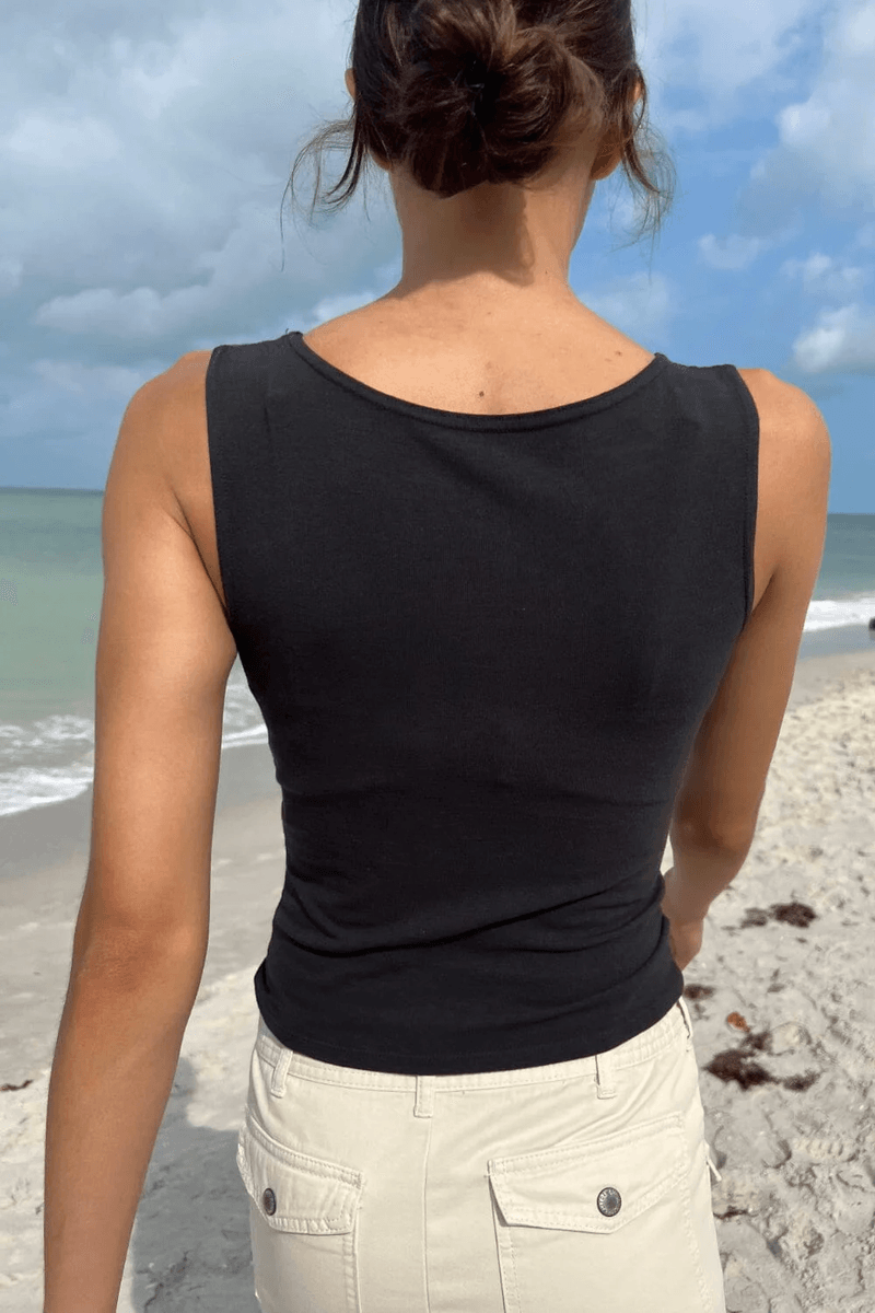 höj Din Garderob Med brandy Melville Kathleen Basic Tank Svart. Denna Figurnära Mjuka Tanktopp är Den Perfekta Blandningen Av Komfort Och Stil, Designad För Dem Som Uppskattar En Slank Silhuett Och Mångsidiga Modeval.