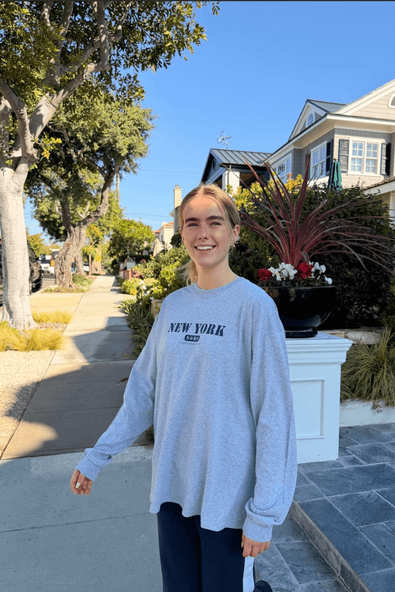 höj Din Avslappnade Garderob Med brandy Melville Camila New York Top Silver Grey. Denna Oversized Långärmad Topp Kombinerar Enkel Stil Med Komfort, Vilket Gör Den Till Ett Måste För Alla Modeälskare.