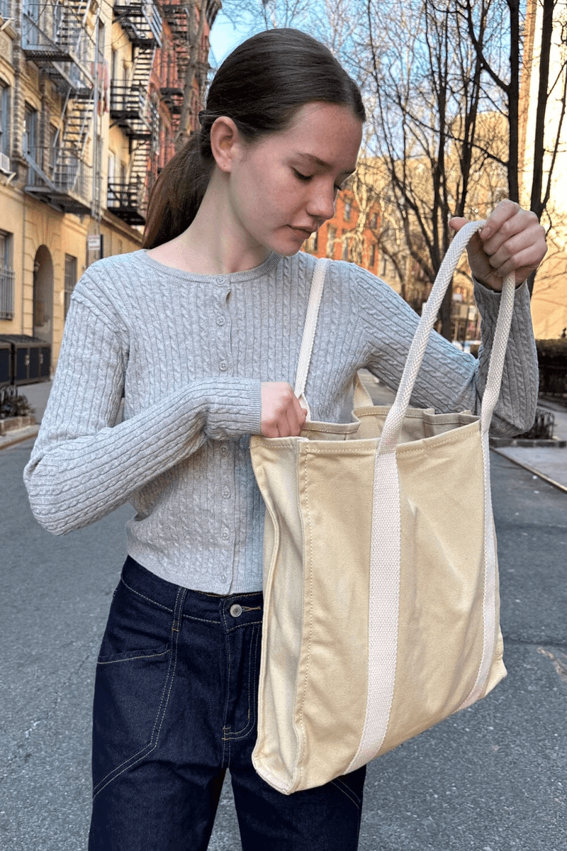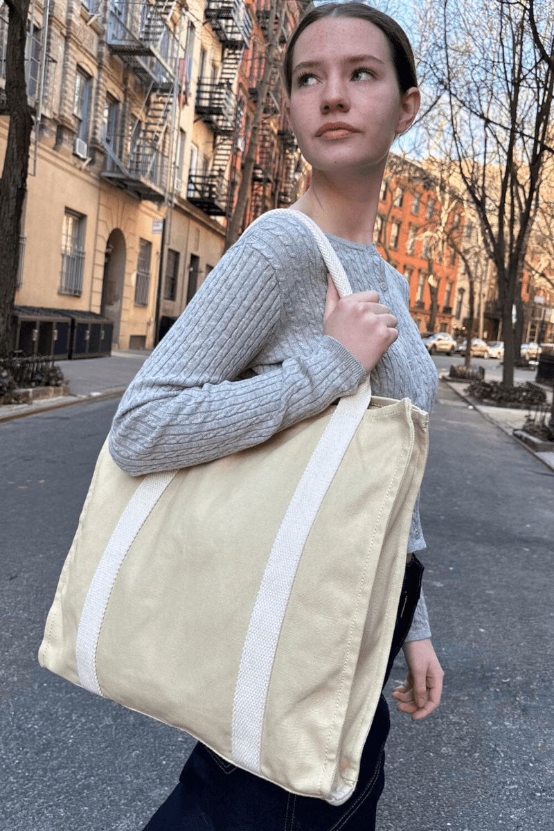 Discover the perfect blend of functionality and fashion with the Brandy Melville Tote Bag Ivory. This oversized canvas tote is designed for the modern individual who values both style and practicality. Ideal for everyday use, this tote seamlessly complements any outfit.