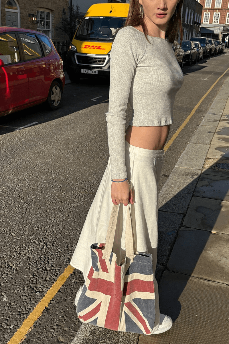 The Brandy Melville Union Jack Cotton Tote Bag Ivory is not just a bag; it's a statement piece. Its eye-catching design is perfect for those who want to showcase their love for British culture while maintaining practicality. The soft cotton fabric ensures comfort and durability, making it suitable for daily use. Whether you’re heading to class, running errands, or enjoying a day out with friends, this tote bag has you covered.