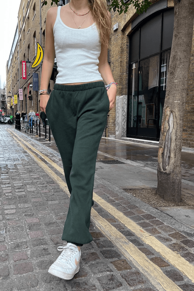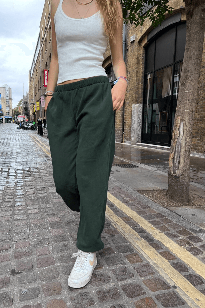 loungewear Koleksiyonunuzu brandy Melville Rosa Eşofman Altı Koyu Yeşil Ile Güncelleyin. Bu şık Eşofman Altları, Evde Rahat Günler Veya Gündelik çıkışlar Için Mükemmeldir, Konforu şık Bir Görünümle Birleştirir.